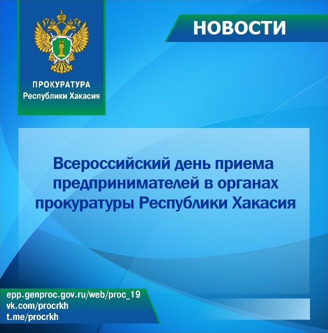 7 апреля 2026 г. в прокуратуре Республики Хакасия в течение рабочего дня будет проводиться Всероссийский день приема предпринимателей (проводится первый вторник каждого месяца).