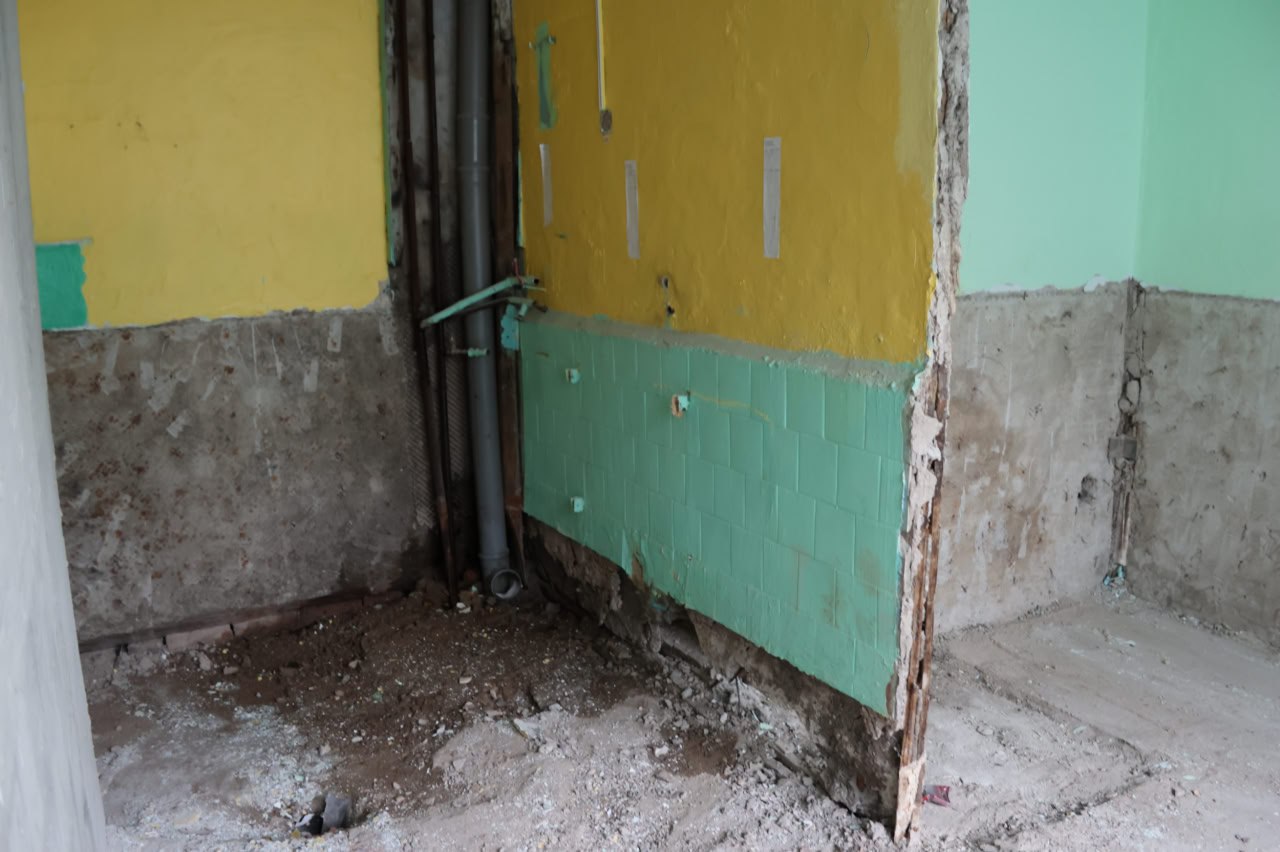 Сейчас на объекте задействована бригада из 14 человек. На эту и следующую недели запланировано завершение демонтажных работ на втором этаже, после чего начнётся оштукатуривание стен. Параллельно рабочие вскрывают полы, чтобы оценить их общее состояние. В ясельной группе заканчиваются демонтажные работы, и вскоре строители приступят к заливке полов с системой «тёплый пол». Как только позволят погодные условия, дополнительная бригада приступит к кровельным работам, а после окончания отопительного периода начнётся плановая замена системы отопления.