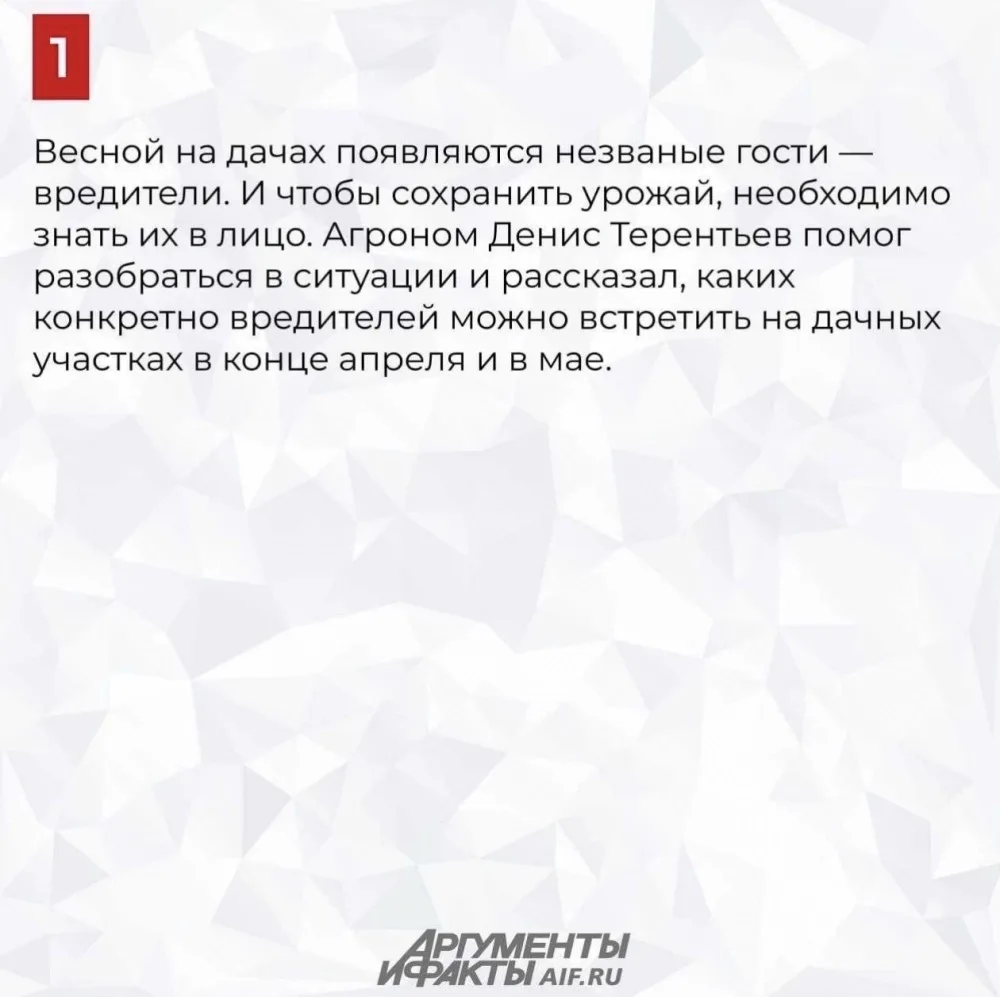 Вместе с агрономом Денисом Терентьевым разбираемся, какие «незваные гости» могут появиться на участках весной и как с ними бороться. Об этом — в наших карточках.