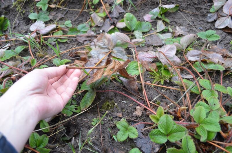 К весне клубника покрыта иссохшими листьями, которые остались после зимы. Как только снег сойдет и почва подсохнет, стоит заняться очищением плантации. Це необходимо, чтобы новые листья не подвергались риску заболеваний, которые могут остаться на старых листьях.
