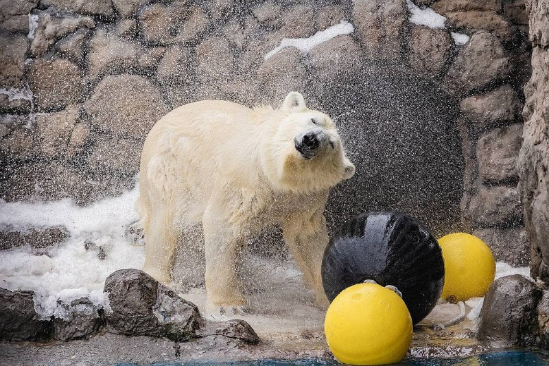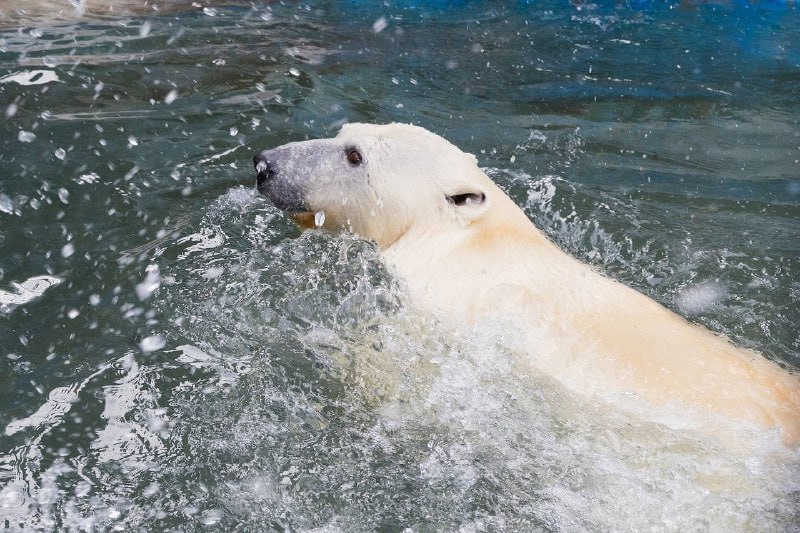 Кто как радуется долгожданному теплу, а белые медведи в краевом зоопарке уже открыли купальный сезон