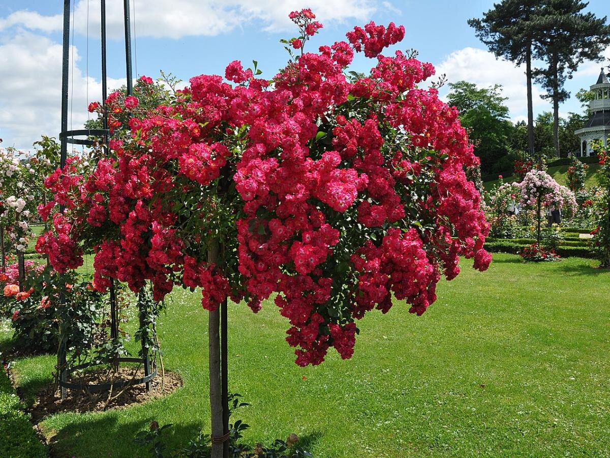- Плетистые розы: однократные — укоротить на 1/3, многократные — на 2/3.