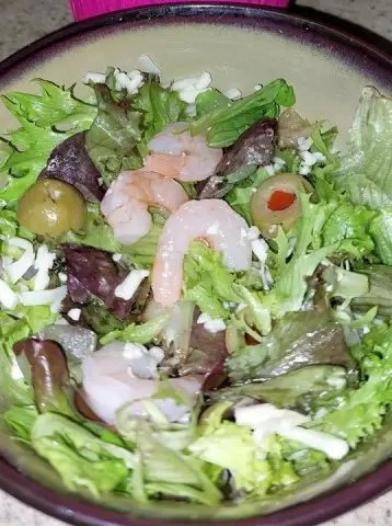 На тарелке сразу ощущается свежесть: зелень, нежные креветки и немного солоноватого сыра создают баланс вкусов за считанные минуты.