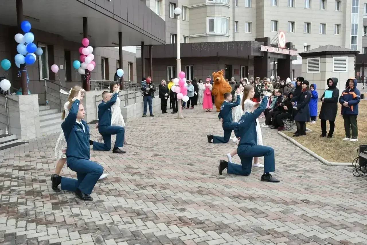 В 11:00 на площадке перед перинатальным центром развернулось торжественное мероприятие, посвященное чествованию беременных.