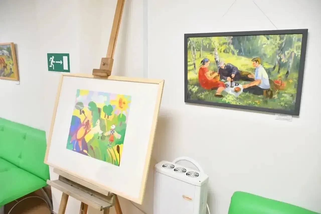 В поликлинике перинатального центра Хакасский национальный музей и детская художественная школа развернули выставки фотографий и детских рисунков.