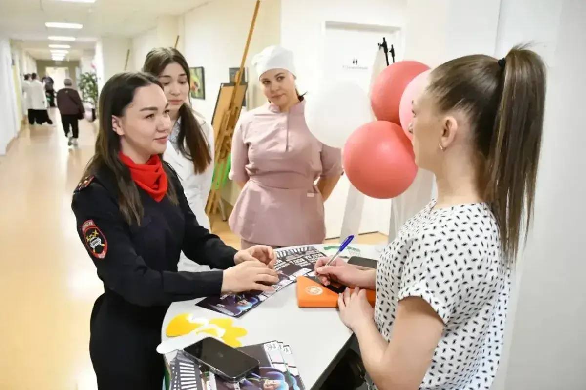 В этом году праздничная программа началась в 10:00 в поликлинике медучреждения с выставки, представленной Социальным фондом России, Уполномоченным по правам ребенка и некоммерческими организациями. Выставка была нацелена дать информацию о социальных бонусах для будущих и молодых мам.