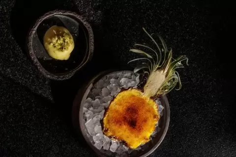 Ананасы были разработаны в Южной Америке и с тех пор стали неотъемлемой частью кухни многих стран, особенно в Мексике. Здесь их часто подают с различными видами мяса, включая свинину в традиционном барбекю. Бренд-шеф ресторана Maya, Том Халпин, решил использовать этот фрукт в своем дегустационном сету The Soul Of Maya, добавив в меню уникальный десерт – крем-брюле в половинке запеченного ананаса, который напоминает коктейль «Пина Колада».