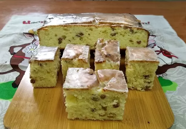 По окончании выпечки пирог можно покрыть сиропом из сахара и воды, а затем посыпать сахарной пудрой — так он станет еще более аппетитным.