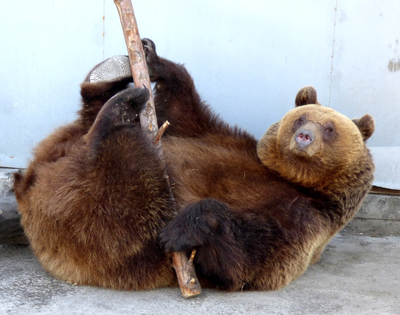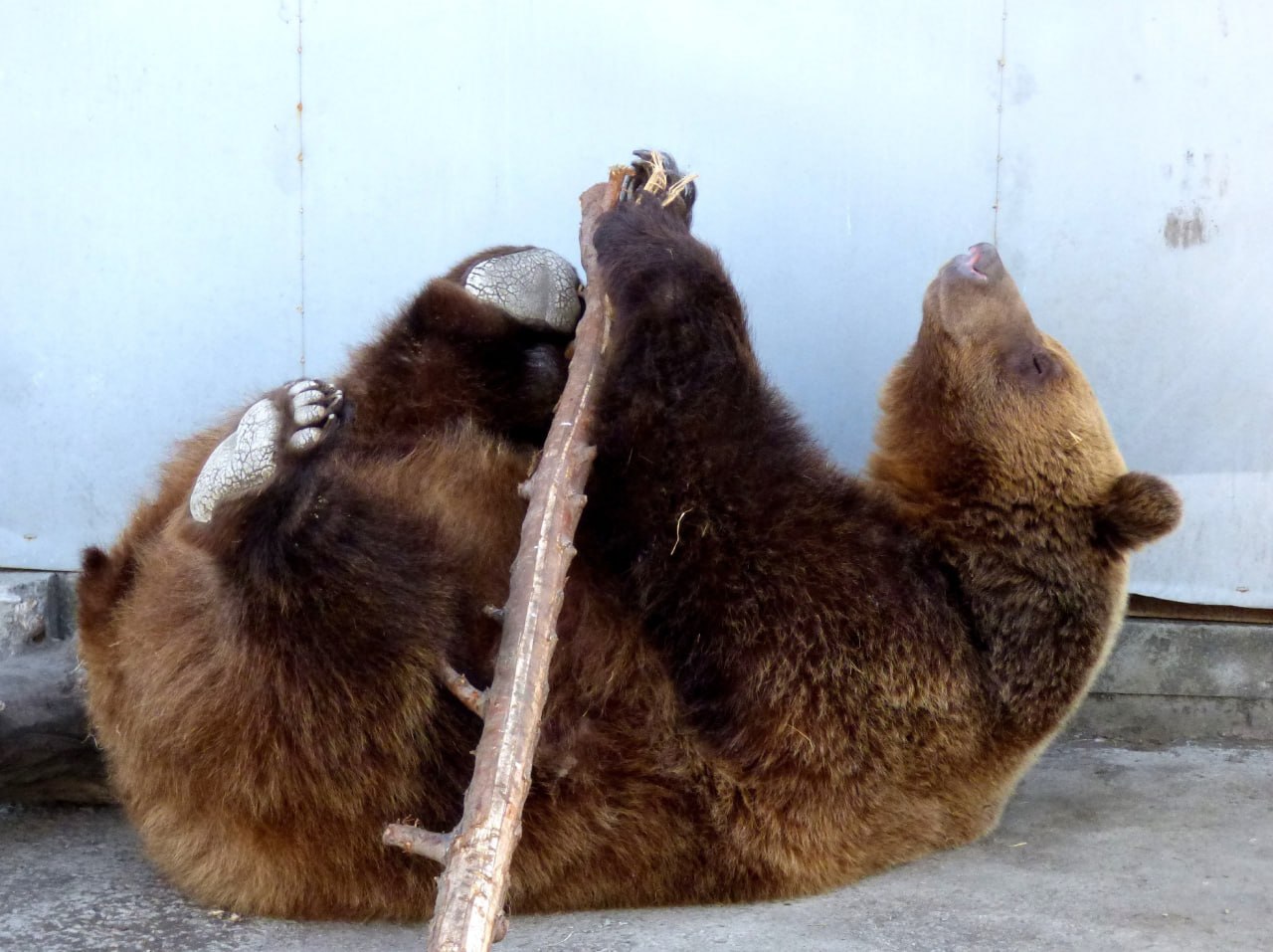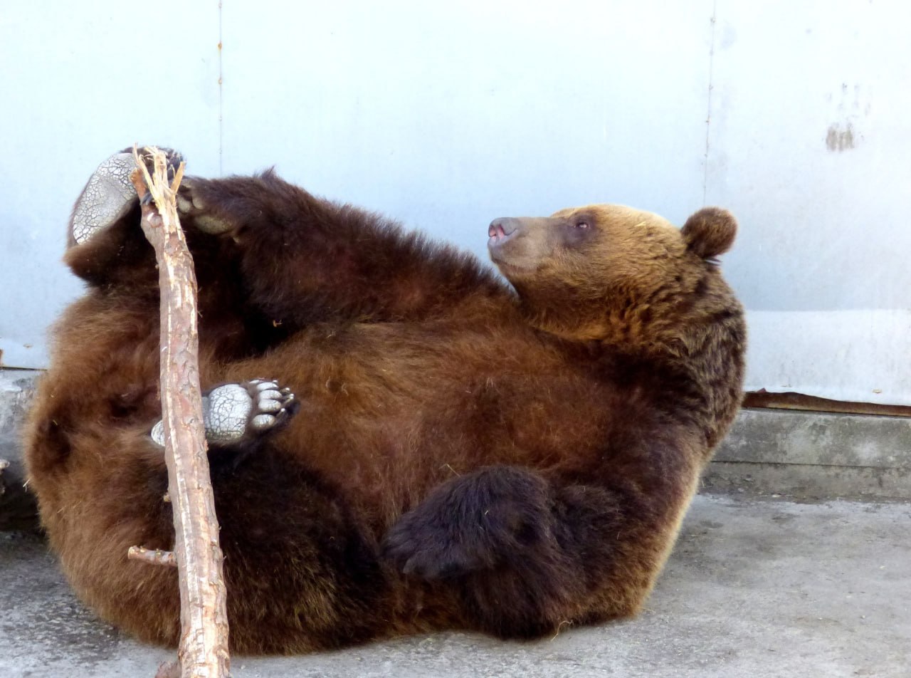 Раз-два-три, закончили упражнение! Зарядку медведицы Бусинки засняли сотрудники абаканского зоопарка