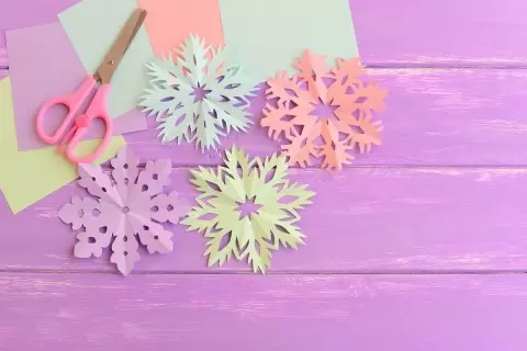Если классика вам показалась недостаточно интересной, попробуйте сделать объемные снежинки. Они состоят из нескольких слоев бумаги, которые склеиваются или сгибаются, создавая удивительные формы. Для этого можно использовать как обычную, так и тишью или крепированную бумагу, которая придаст легкость и пышность украшению.