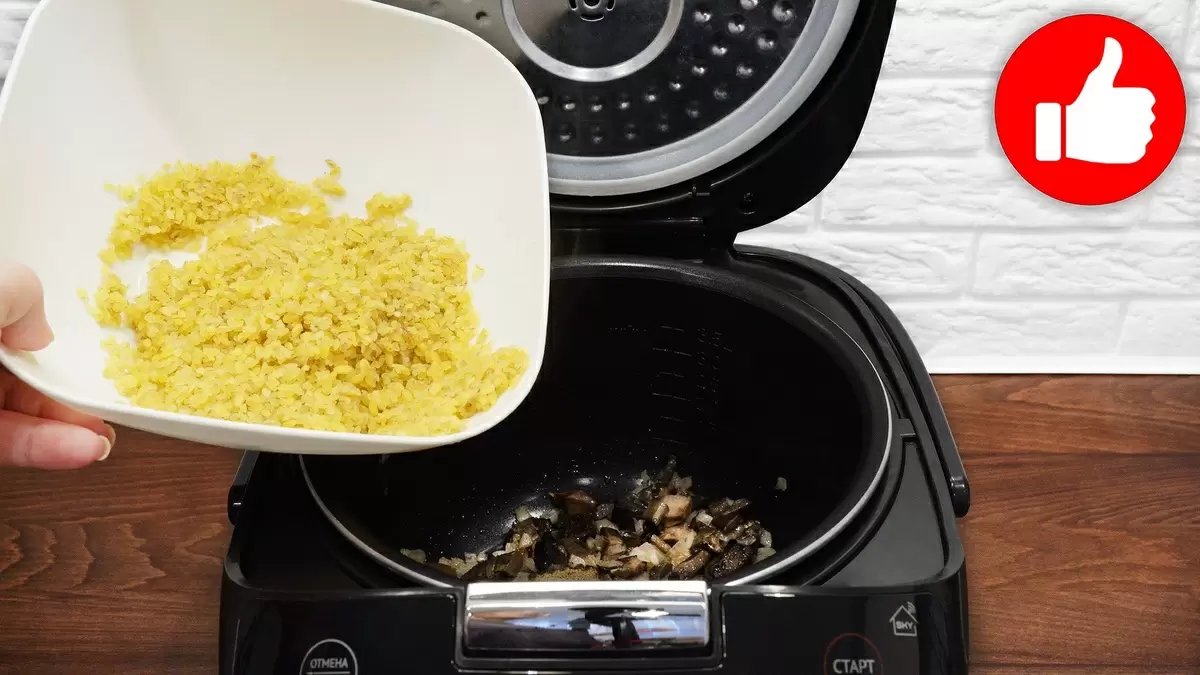 3. Далее следует добавить промытый булгур и горячую воду. Переключите режим на "Рис/Крупы" и готовьте в течение 35 минут.