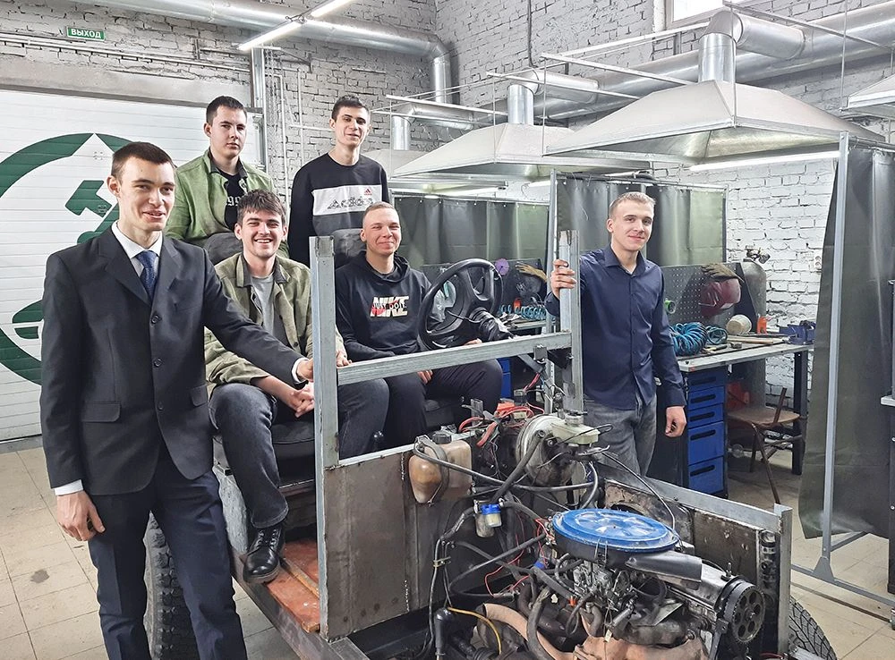 Надо ли говорить, что подобные инициативы всегда находили поддержку со стороны директора колледжа Николая Шелухи, хотя не всё то просто, что кажется. Не случилось бы никакого трактора, если бы учебное заведение в 2021 году не выиграло федеральный грант по направлению «Обслуживание транспорта и логистика» и не создало четыре мастерские: по обслуживанию и ремонту легковых автомобилей, грузовых автомобилей, кузовному ремонту и покраске автомобилей. Оснащённые по последнему слову техники, они помогли студентам максимально проявить свой рационализаторский гений. Однако жизнь, как и Хакасский политехнический колледж, не стоит на месте. Поэтому информация о том, что тут снова что-то затевается, не удивила. После этого и состоялась новая встреча с директором колледжа Николаем Шелухой.