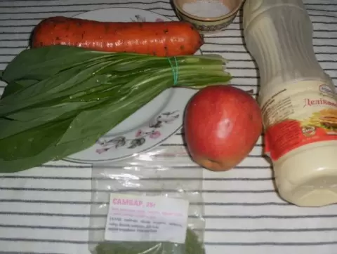Для приготовления салата из черемши с морковью и яблоком понадобятся: