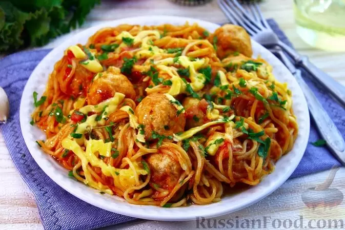 5. Спагетти с фрикадельками в томатном соусе