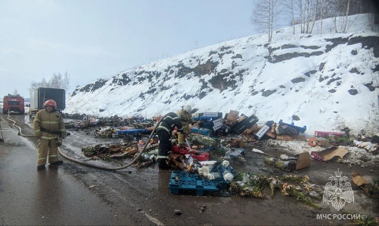 Грузовик с цветами вспыхнул прямо на ходу в Орджоникидзевском районе