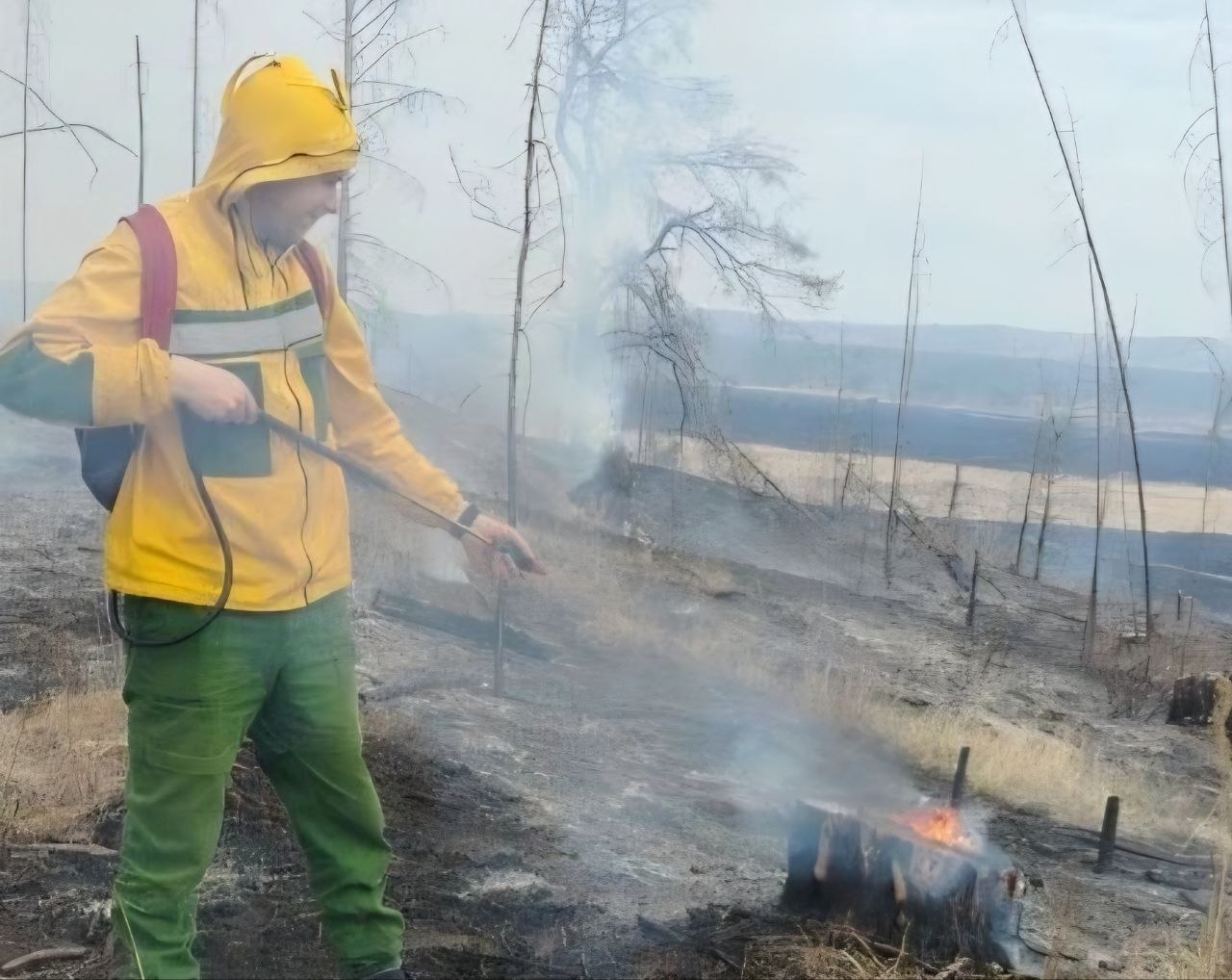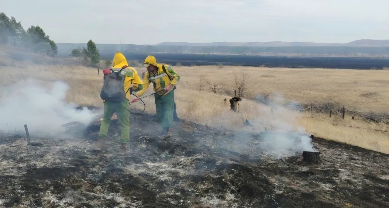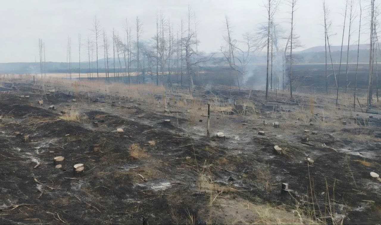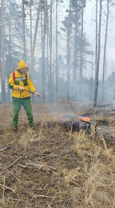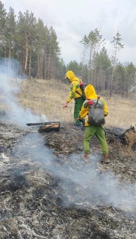 Лесопожарные увидели пламя, когда патрулировали территорию и сразу приступили к ликвидации. Специалисты отметили, на этом же участке уже бушевал огонь, тогда часть деревьев вырубили. Сейчас парням пришлось заливать водой каждый пень, чтобы не дать возможности ветру раздуть ни одну искру.