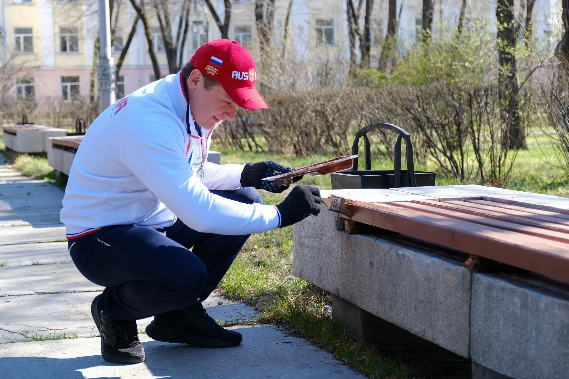 Сегодня с членами правительства республики убрали в парковой зоне Первомайской площади прошлогоднюю листву и мелкий мусор, покрасили лавочки. К активному труду на улице располагает солнечная, ясная погода.